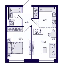 Продаётся 2-комнатная квартира в строящемся доме (Корпус 4), срок сдачи: II-кв. 2028, общей площадью 45.24 кв.м., на 13 этаже. Новый жилой комплекс "Самородный квартал" от Специализированного застройщика "ВИРА 27" расположен в г. Хабаровск по ул. Карла Маркса.