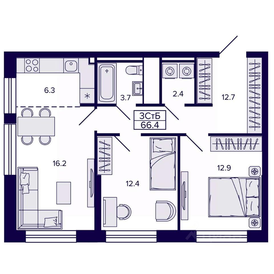 Продаётся 3-комнатная квартира в строящемся доме (Корпус 4), срок сдачи: II-кв. 2028, общей площадью 66.43 кв.м., на 13 этаже. Новый жилой комплекс "Самородный квартал" от Специализированного застройщика "ВИРА 27" расположен в г. Хабаровск по ул. Карла Маркса.