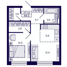 Продаётся 2-комнатная квартира в строящемся доме (Корпус 4), срок сдачи: II-кв. 2028, общей площадью 44.47 кв.м., на 14 этаже. Новый жилой комплекс "Самородный квартал" от Специализированного застройщика "ВИРА 27" расположен в г. Хабаровск по ул. Карла Маркса.
