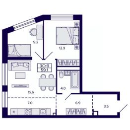 Продаётся 3-комнатная квартира в строящемся доме (Корпус 4), срок сдачи: II-кв. 2028, общей площадью 59.05 кв.м., на 17 этаже. Новый жилой комплекс "Самородный квартал" от Специализированного застройщика "ВИРА 27" расположен в г. Хабаровск по ул. Карла Маркса.