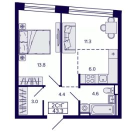 Продаётся 2-комнатная квартира в строящемся доме (Корпус 4), срок сдачи: II-кв. 2028, общей площадью 43.25 кв.м., на 19 этаже. Новый жилой комплекс "Самородный квартал" от Специализированного застройщика "ВИРА 27" расположен в г. Хабаровск по ул. Карла Маркса.
