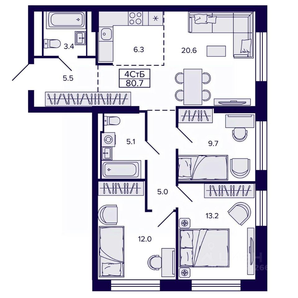 Продаётся 4-комнатная квартира в строящемся доме (Корпус 4), срок сдачи: II-кв. 2028, общей площадью 80.72 кв.м., на 19 этаже. Новый жилой комплекс "Самородный квартал" от Специализированного застройщика "ВИРА 27" расположен в г. Хабаровск по ул. Карла Маркса.
