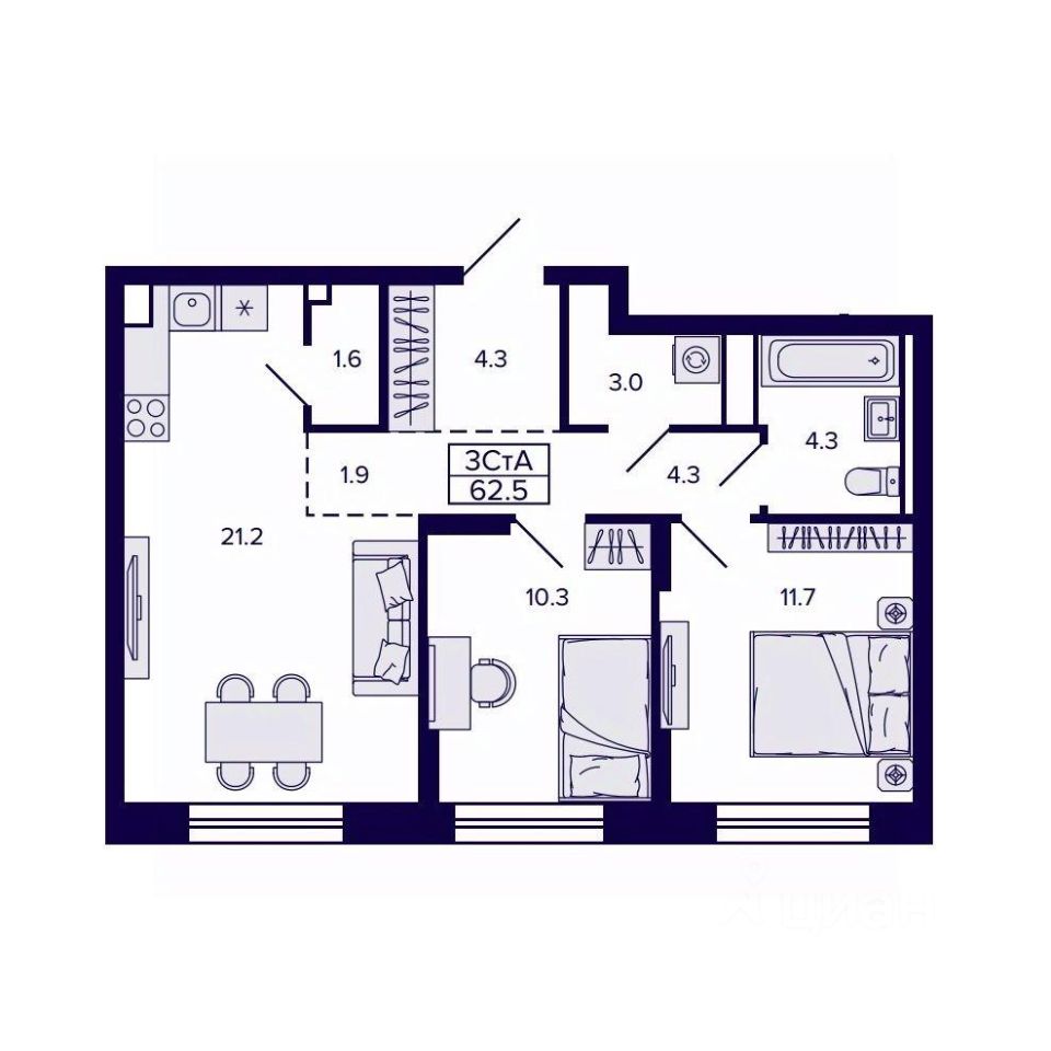 Продаётся 3-комнатная квартира в строящемся доме (Корпус 1), срок сдачи: II-кв. 2028, общей площадью 62.49 кв.м., на 3 этаже. Новый жилой комплекс "Самородный квартал" от Специализированного застройщика "ВИРА 27" расположен в г. Хабаровск по ул. Карла Маркса.