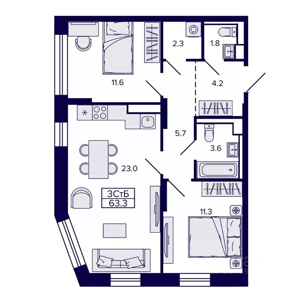 63,33 м²