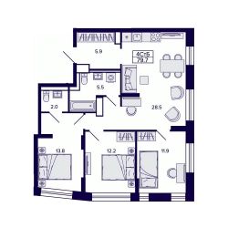 Продаётся 4-комнатная квартира в строящемся доме (Корпус 1), срок сдачи: II-кв. 2028, общей площадью 79.76 кв.м., на 24 этаже. Новый жилой комплекс "Самородный квартал" от Специализированного застройщика "ВИРА 27" расположен в г. Хабаровск по ул. Карла Маркса.