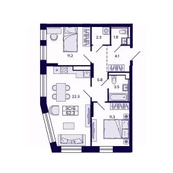 22,3 м²