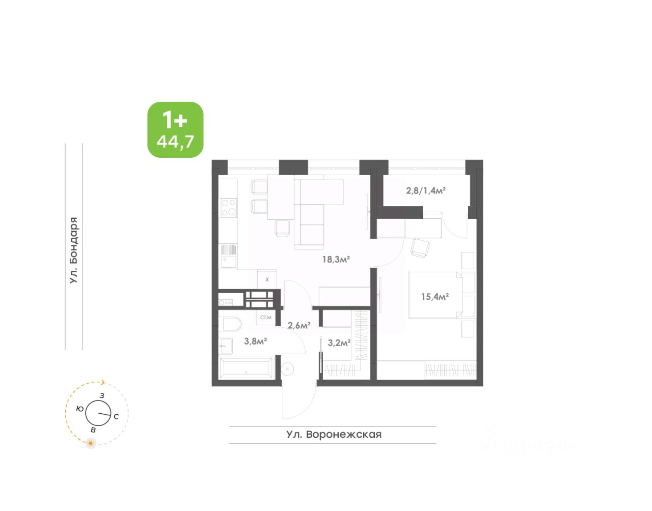 • Большая кухня-гостиная площадью 18,3 кв.м. с 2-мя окнами создаст удобное пространство для общения и кулинарных экспериментов;