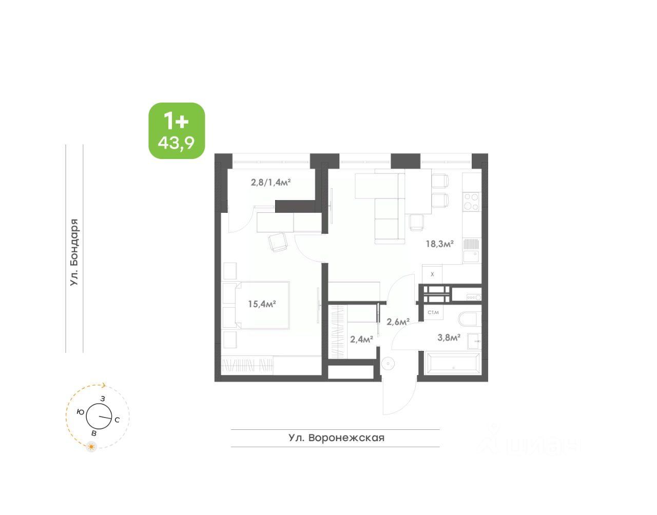 43,9 м²