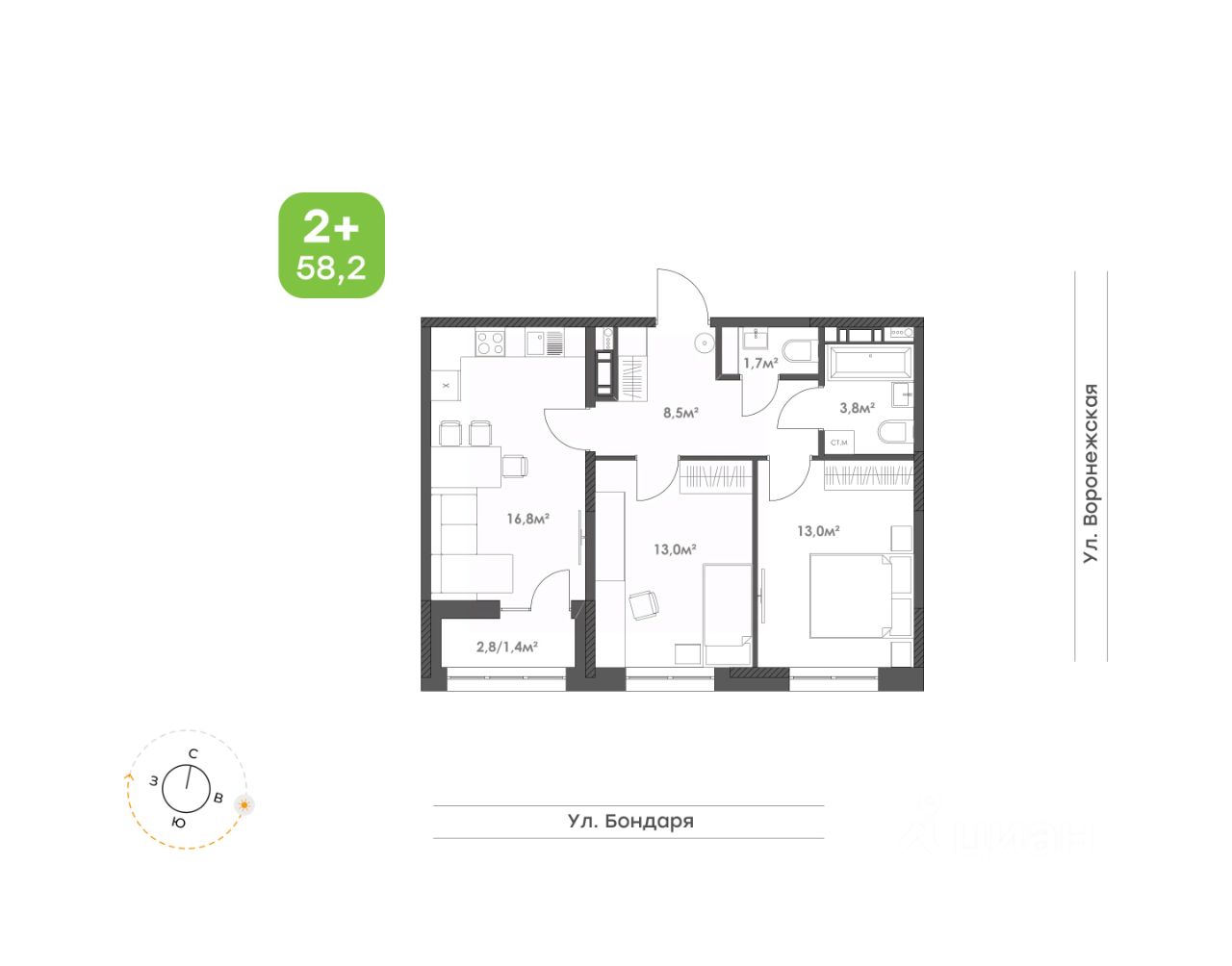 • Две спальни с нишей для гардероба, шкафа, рабочего места или стеллажа;