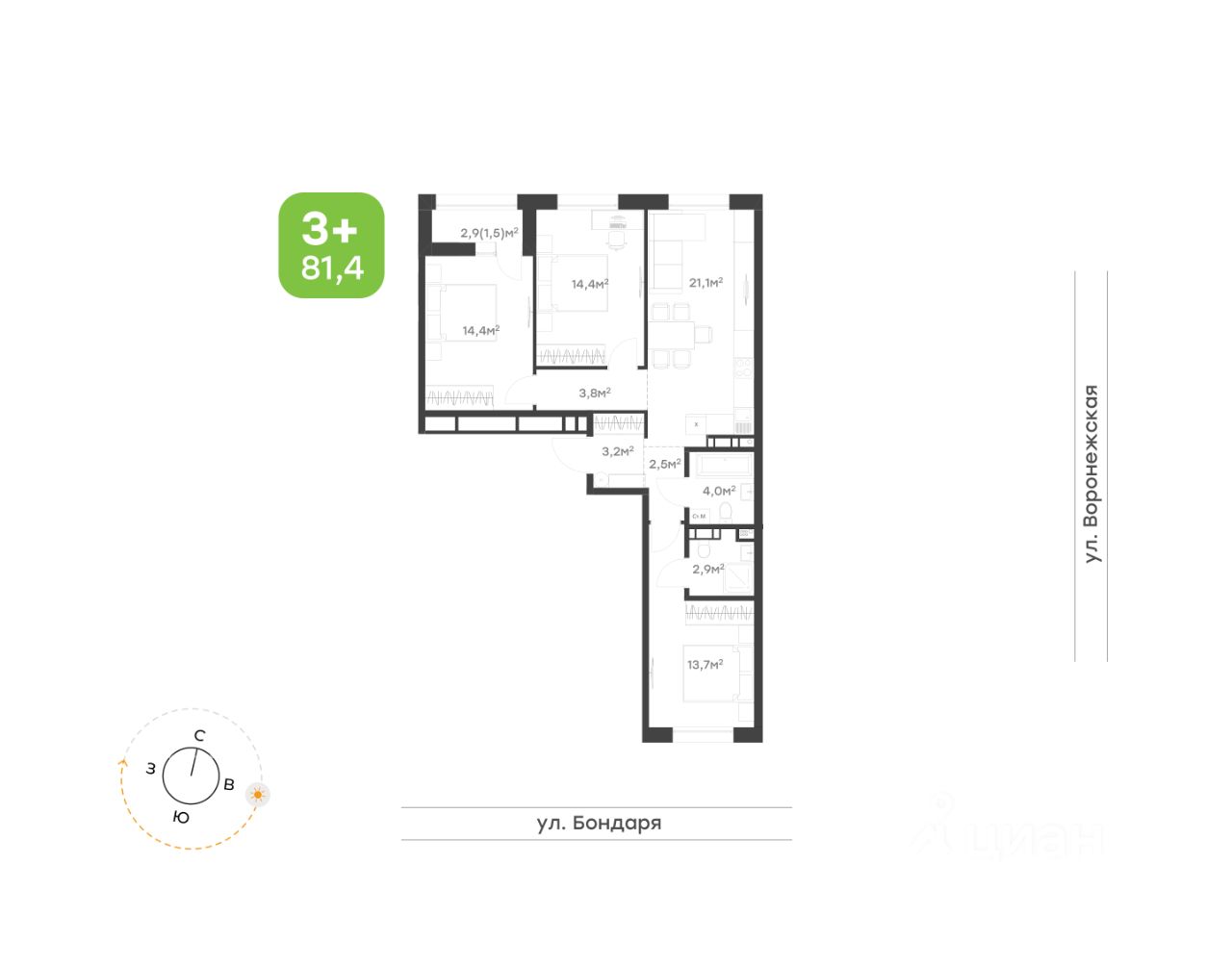 • Просторная кухня-гостиная площадью 21,1 кв. м станет идеальным местом для семейных встреч и отдыха;