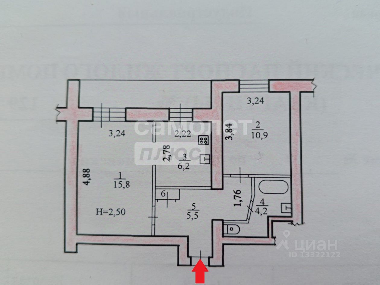 - площадь квартиры 43,3 квм без учета балкона (комнаты 15,8 и 10,9 квм соотвественно, кухня 6,2 квм, сан. узел совмещен 4,2 квм);