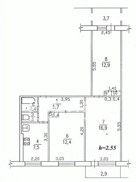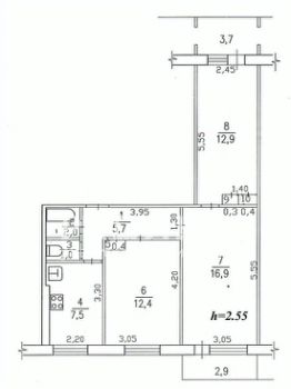 Общая площадь квартиры составляет 59.5м2. Включает в себя кухню 7.5м2., вместительный зал, спальную комнату, детскую, раздельный сан/узел и большую прихожую. Состояние квартиры: старый ремонт, окна остеклены пластиковыми стеклопакетами, выходят на обе стороны дома. Болкон и лоджия остеклены алюминиевыми стеклопакетами. За счёт стоимости данного объекта, вы можете воплотить все свои дизайнерские решения в реальность.