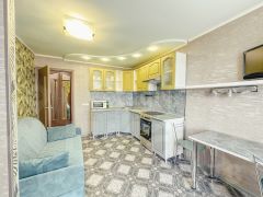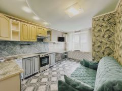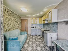Планировка отличается практичностью: просторная изолированная комната и кухня значительной площади позволяют с удобством разместить мебель и организовать пространство. В отделке использованы надежные материалы, новые межкомнатные двери и пластиковые окна. Установлен кондиционер, в совмещенном санузле новая сантехника, установлены счетчики на горячее и холодное водоснабжение. Квартира очень теплая, установлен навесной потолок с утеплением. Большая часть мебели и бытовой техники остается в квартире.