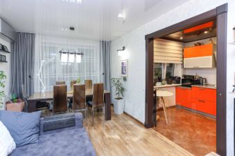 Большая дизайнерская кухня в 10 квадратных метров - это достаточно места как для приготовления пищи, так и для семейных ужинов. Также имеется раздельный санузел и балкон, откуда открывается спокойный вид на двор.