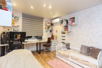 Для маленьких жителей квартиры оборудована отдельная комната, а во дворе обустроены детская и спортивные площадки. Парковка предусмотрена прямо во дворе, что обеспечивает удобство автовладельцам.