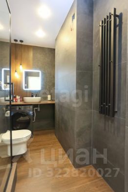 В ванной дорогой керамогранит + мозаика из натурального камня. Душевая кабина из толстостенного стекла, применена качественная сантехника. Установлен электрический полотенцесушитель.