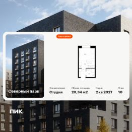 Продаётся квартира-студия площадью 20,34 кв.м на 10 этаже 10 этажного дома (Корпус 10, Секция 1) проекта ПИК Северный парк. Светлый просторный подъезд на уровне земли, функциональная планировка, большие окна, без отделки.