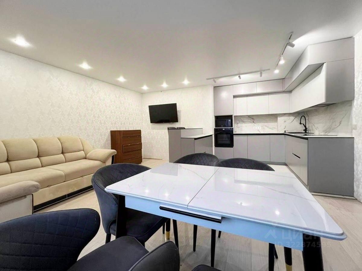 В квартире сделан современный ремонт. Пол ламинат и керамогранит, потолки натяжные, в санузле кафель.