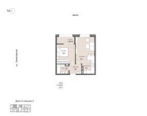 Однокомнатная квартира евроформата Интересная особенность - кухня-гостиная с нишей под гарнитур и возможностью установить барную стойку. Уютная спальня с местом под стеллаж или шкаф. Вид с лоджии открывается во двор.