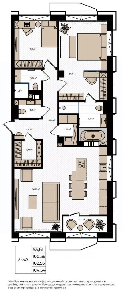 Квартира свободной планировки для воплощения индивидуального дизайна. Установлена входная дверь, радиаторы отопления, приборы учёта, стеклопакеты в алюминиевом профиле. Выложены стены сан.узла.