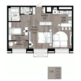 Квартира свободной планировки для воплощения индивидуального дизайна. Установлена входная дверь, радиаторы отопления, приборы учёта, стеклопакеты в алюминиевом профиле. Выложены стены сан.узла.