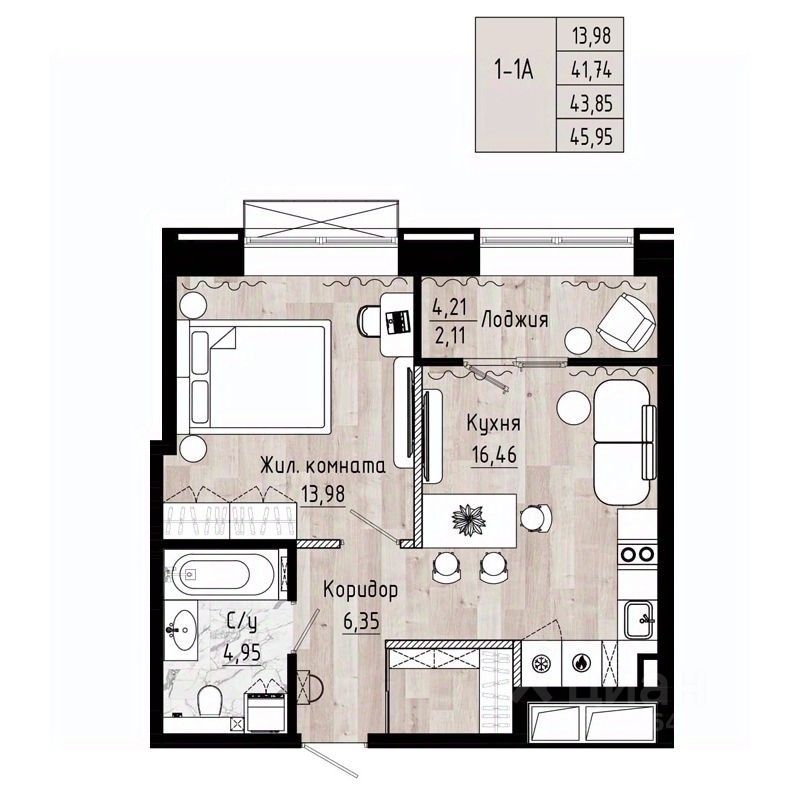 Общая площадь43,85 м²