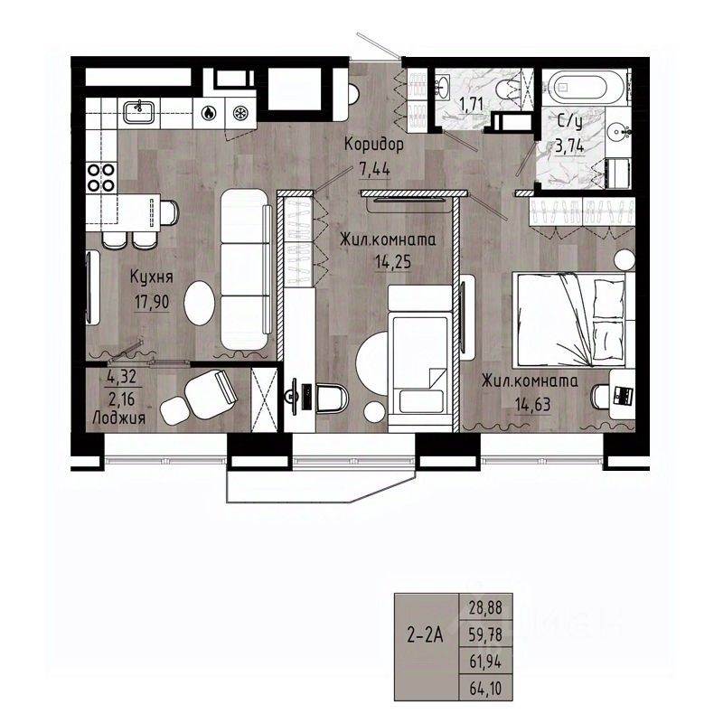 Квартира свободной планировки для воплощения индивидуального дизайна. Установлена входная дверь, радиаторы отопления, приборы учёта, стеклопакеты в алюминиевом профиле. Выложены стены сан.узла.