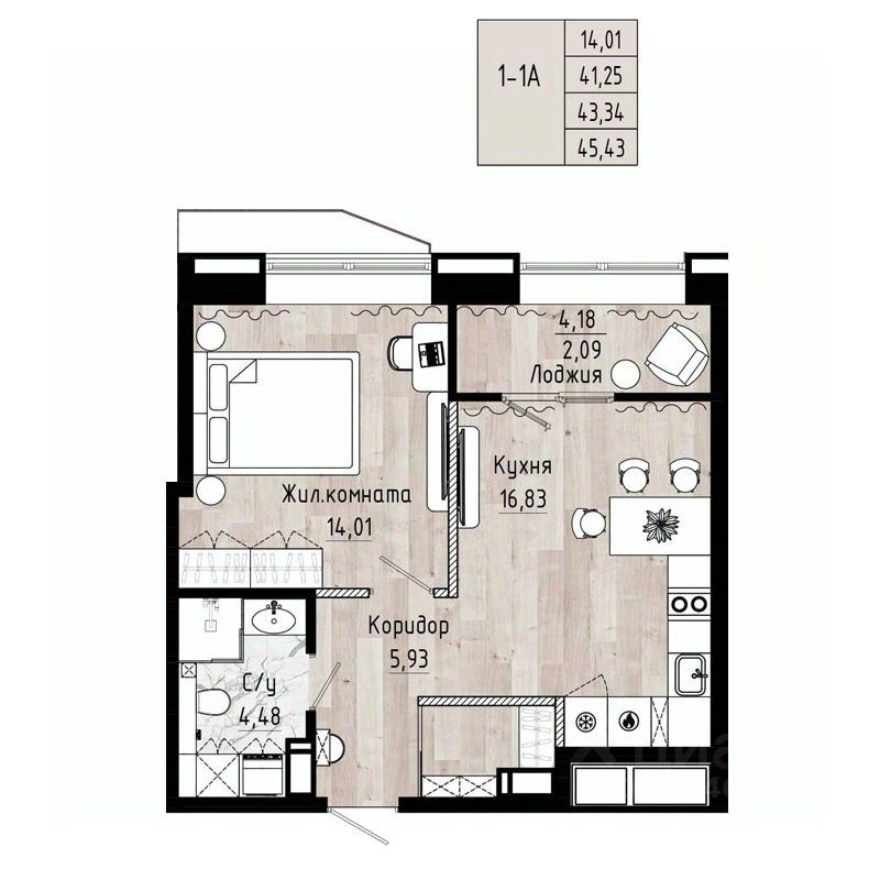 Квартира свободной планировки для воплощения индивидуального дизайна. Установлена входная дверь, радиаторы отопления, приборы учёта, стеклопакеты в алюминиевом профиле. Выложены стены сан.узла.