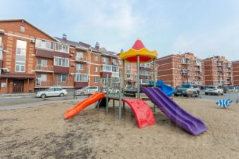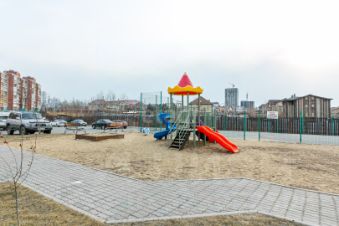 Дом расположен в тихом и спокойном районе с ухоженным двором, где есть детская и спортивная площадки, а также отдельное место для выгула собак. В подъезде и на территории установлено видеонаблюдение, включая детскую площадку, что обеспечивает безопасность жильцов. Парковочных мест достаточно для всех жителей.