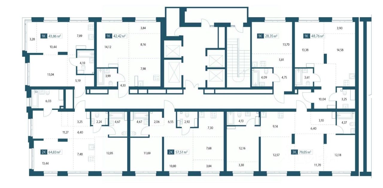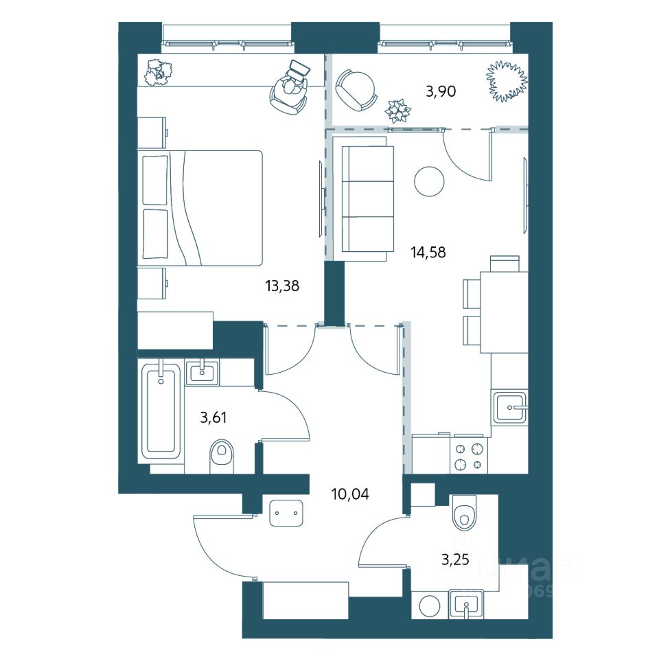 Однокомнатная квартира площадью 46,81м2.