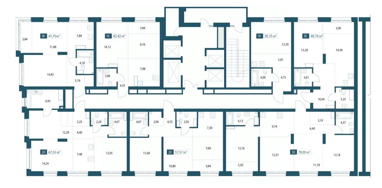 Однокомнатная квартира площадью 46,81м2.