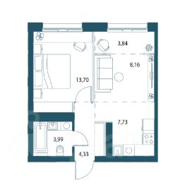 Однокомнатная квартира площадью 41,75м2.