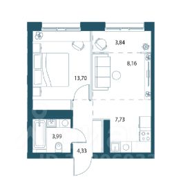 Однокомнатная квартира площадью 41,75м2.