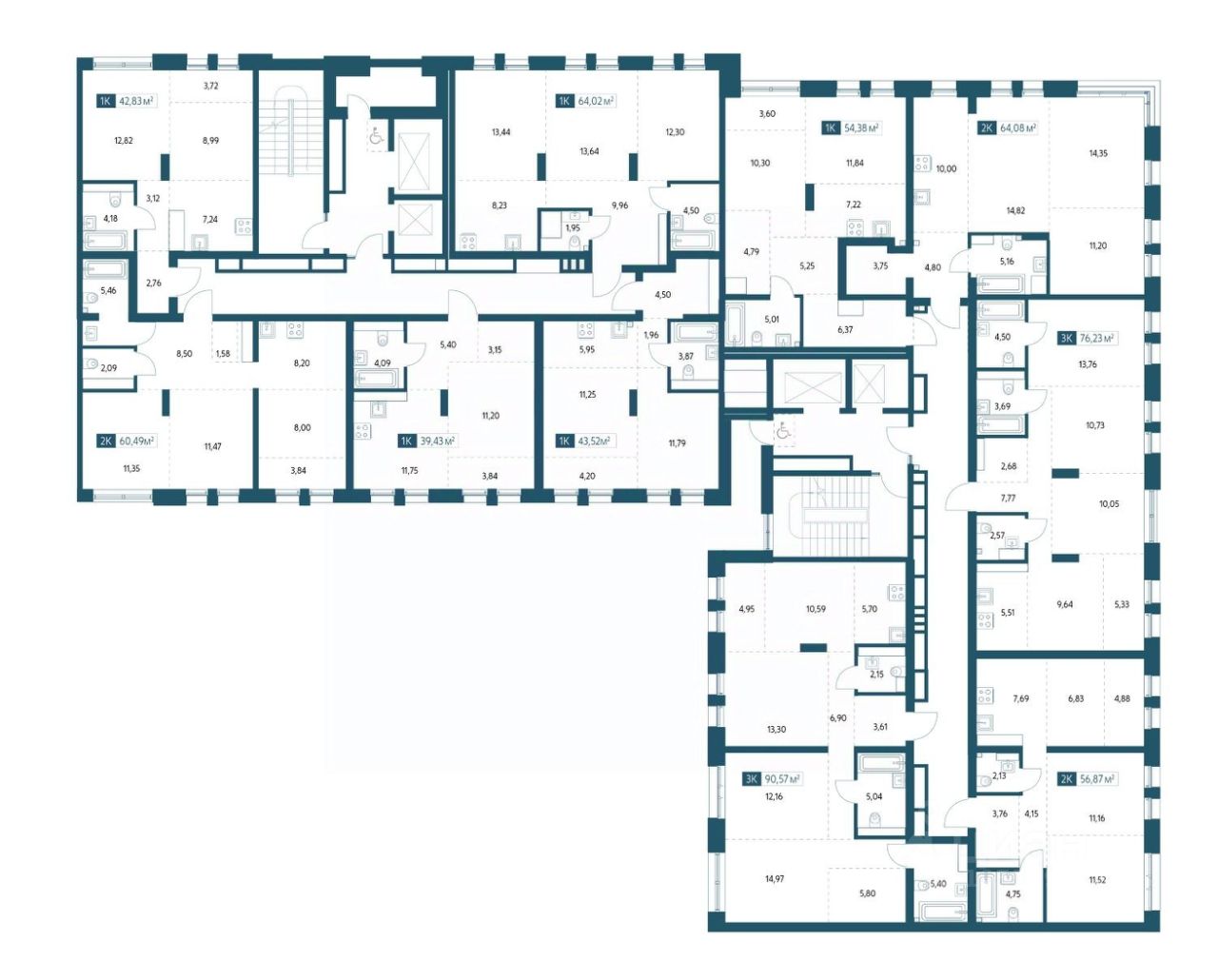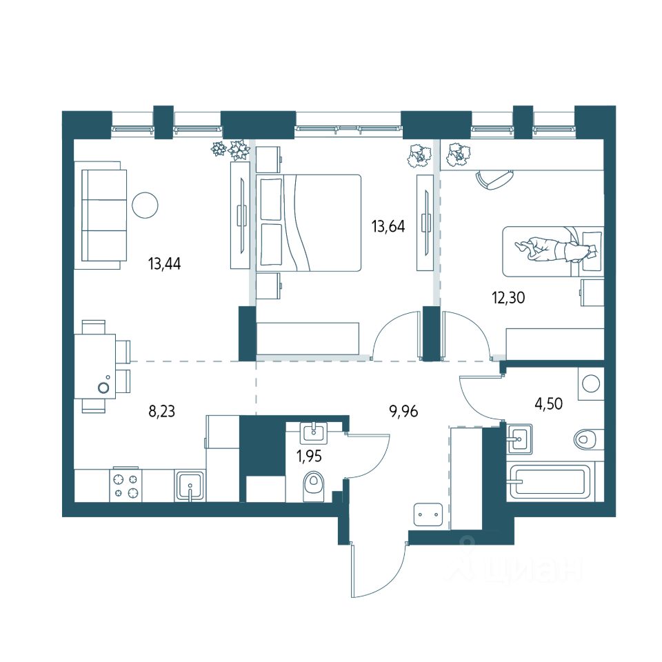 Изолированные комнаты правильной формы 12,3м2+13,64м2