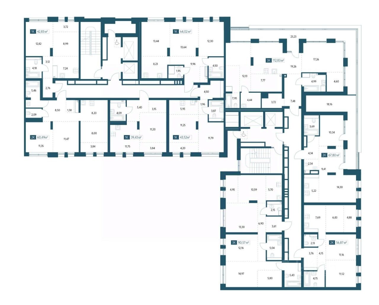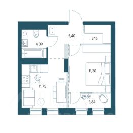 Полноценная однокомнатная квартира площадью 39,43м2.