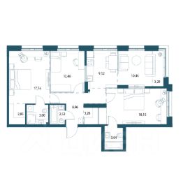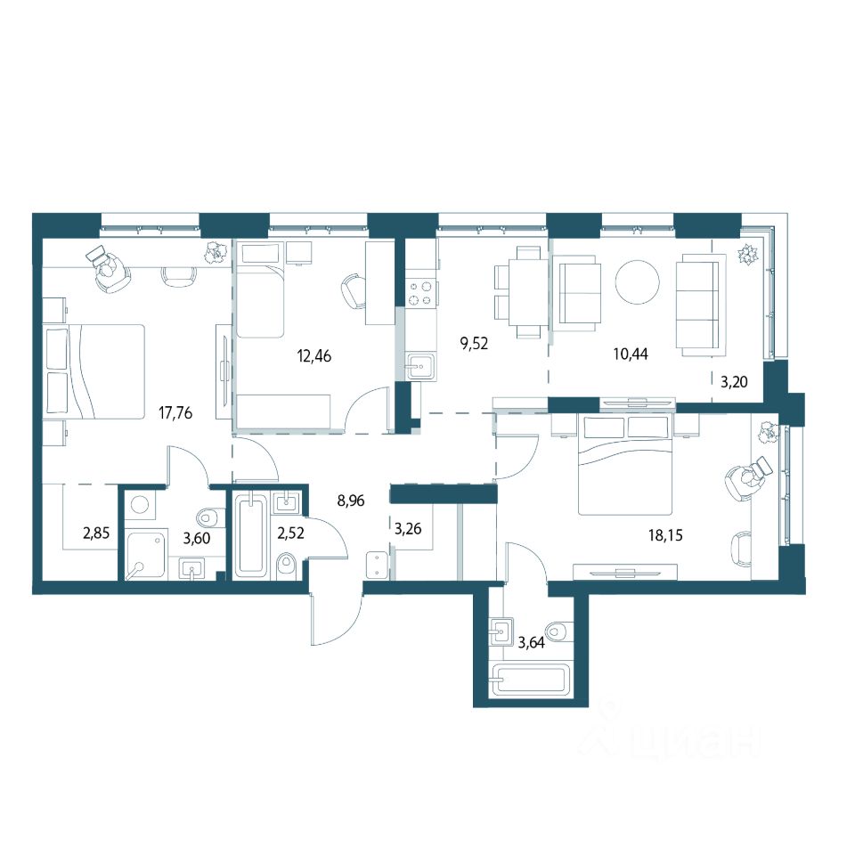 Изолированные комнаты правильной формы, две мастер-спальни со своим санузлом и гардеробной зоной.