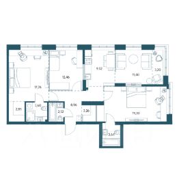 Трёхкомнатная квартира площадью 96,87м2.