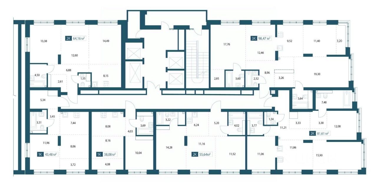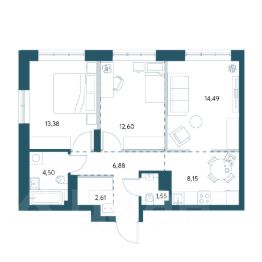 Трёхкомнатная квартира площадью 96,87м2.
