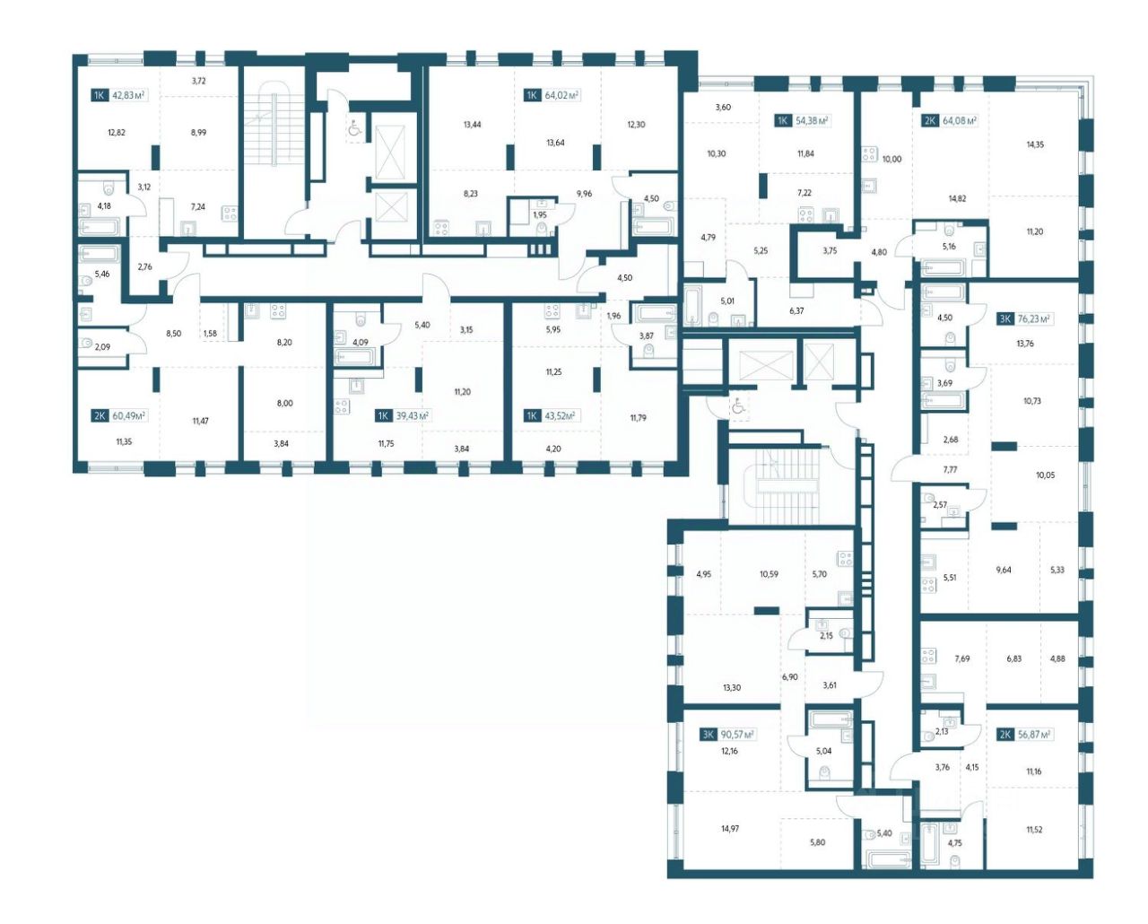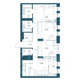 Трёхкомнатная квартира площадью 73,57м2.