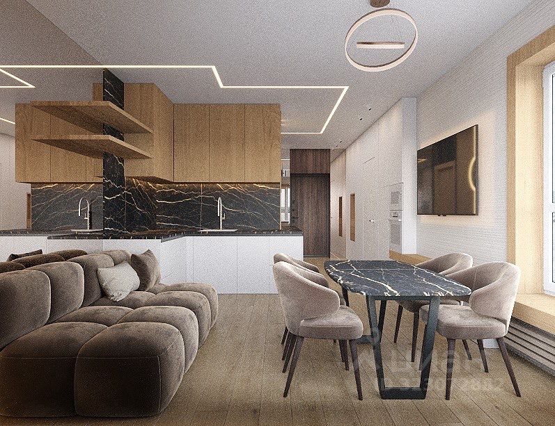 Квартира после строителей, но уже с готовым дизайн-проектом с чертежами — можно сразу начинать ремонт без переделок.Планировка и пропорции рассчитаны до деталей: свет, мебель, зонирование.
