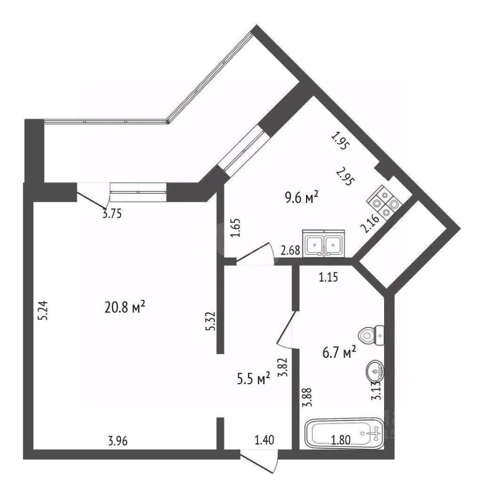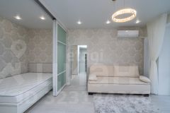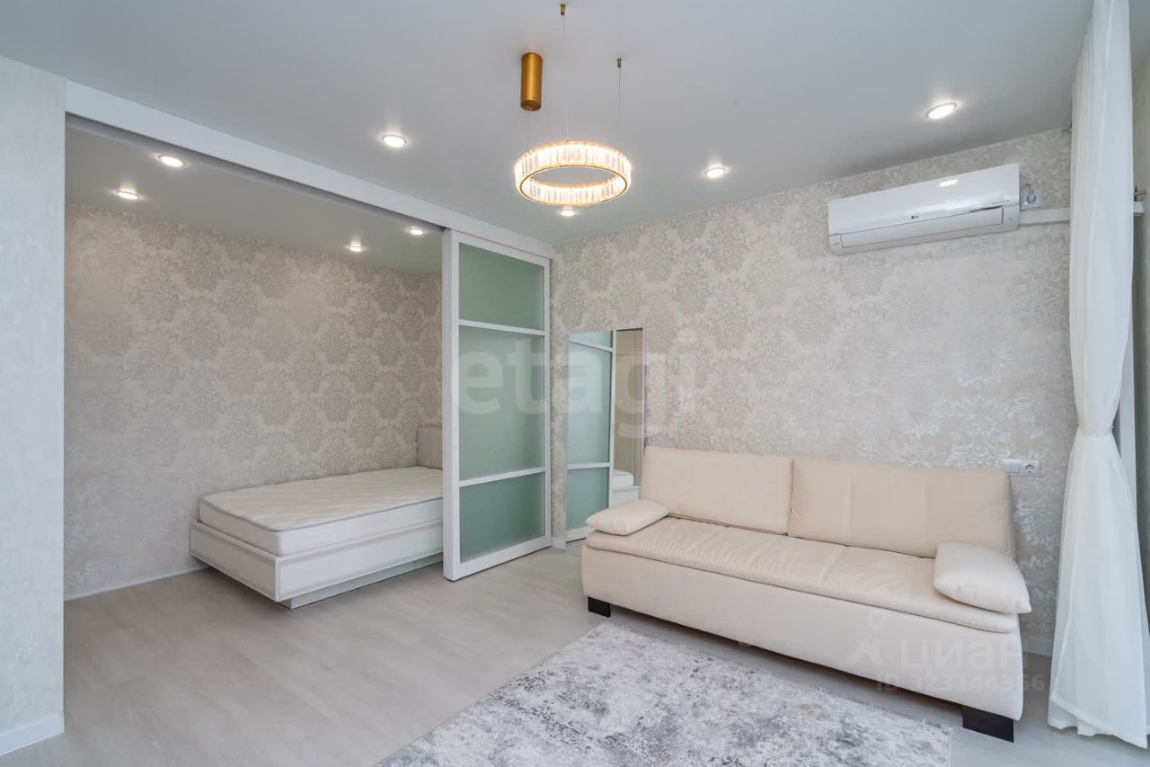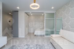Жилье укомплектовано новой мебелью (в прихожей, кухне, ванной, гостиной и спальной зоне с раздвижной стеной).