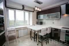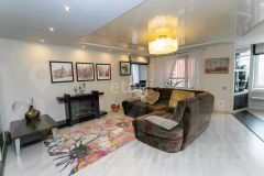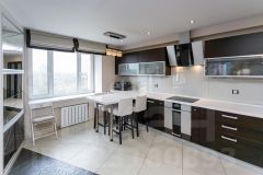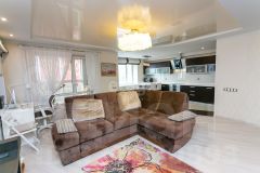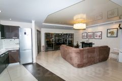 Всё пространство функционально. Зона отдыха, зона приготовления и приема пищи. Стол на пять персон. Кухонная мебель эргономична и продумана. В зоне отдыха на огромном диване можно комфортно устроиться одному, вдвоем или всей компанией.