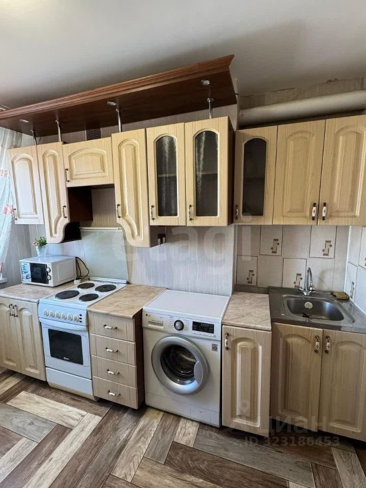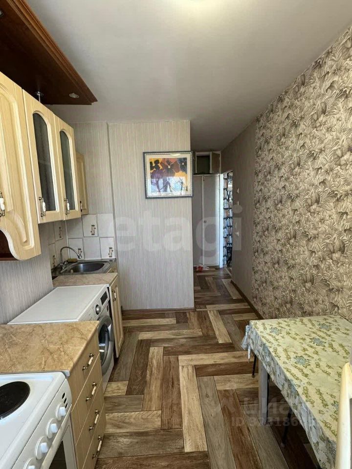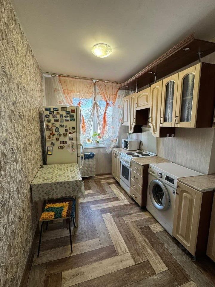 На кухне установлен функциональный гарнитур, а также остаются стиральная машина и холодильник. Имеется просторная лоджия с алюминиевым остеклением.
