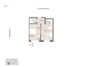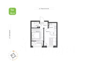 Интересная особенность - кухня-гостиная с нишей под гарнитур и возможностью установить барную стойку.