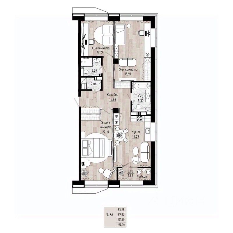 Квартира свободной планировки для воплощения индивидуального дизайна. Установлена входная дверь, радиаторы отопления, приборы учёта, стеклопакеты в алюминиевом профиле. Выложены стены сан.узла.