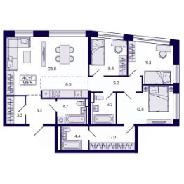 Продаётся 4-комнатная квартира в строящемся доме (Корпус 4), срок сдачи: II-кв. 2028, общей площадью 99.54 кв.м., на 22 этаже. Новый жилой комплекс "Самородный квартал" от Специализированного застройщика "ВИРА 27" расположен в г. Хабаровск по ул. Карла Маркса.