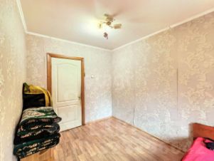 Светлая и теплая, требует косметического ремонта (покраска дверей, замена обоев). В ванной комнате и туалете выполнен хороший ремонт. Установлены экологичные деревянные окна. Балкон застеклен. В квартире остаются мебель и бытовая техника. Продуманная планировка с изолированными комнатами обеспечивает комфорт и возможность организовать рабочее пространство или принять гостей.