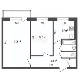 Продается двухкомнатная квартира, 44,3 кв.м.