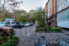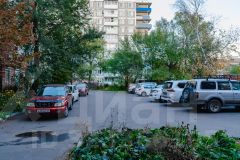 Ухоженный двор оборудован парковочными местами, по периметру дома установлено множество видеокамер, входе в подьезд охраняет металлическая дверь с домофоном.