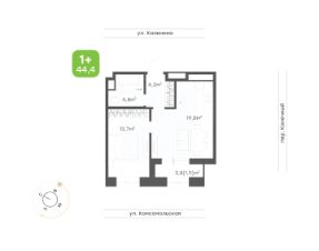 1+ квартира для пары и людей, ценящих спокойную и уединенную жизнь; Кухня-гостиная с выходом на лоджию позволит с комфортом принять гостей или провести спокойный вечер; Отдельная спальня прямоугольной формы даст возможность расставить мебель под "настроение"; На лоджии легко организовать небольшую зону отдыха и наслаждаться свежим воздухом.